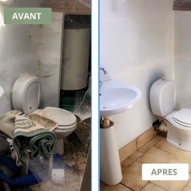 - Désinfection complète des sanitaires, WC et zones sensibles